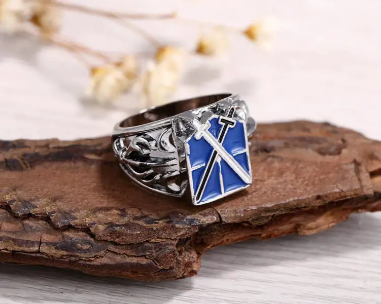 La bague brigade d’entrainement est unisexe. Son logo est représenté par deux épées qui se croisent, l’un noir et l’autre blanche, sur un fond bleu.