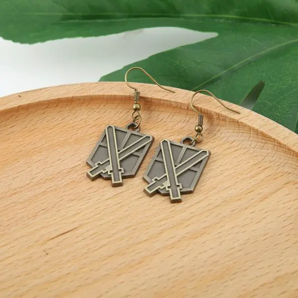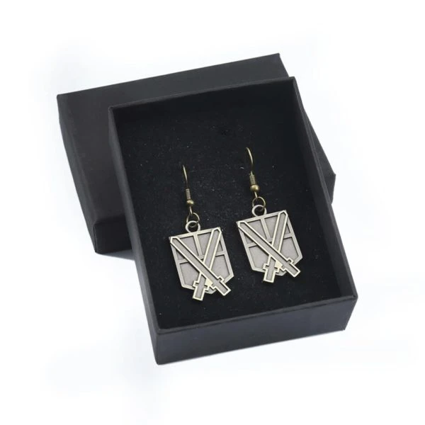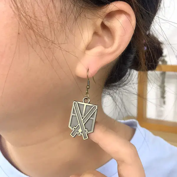 Les boucles d’oreilles Brigade d’entraînement sont d’une belle couleur bronze, qui s’accorde facilement avec n’importe quelle tenue. Ce bijou fantaisie de l’Attaque des Titans représente deux épées croisées, emblème de ce corps de l’armée de Paradis.