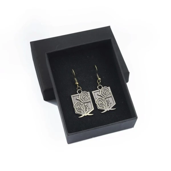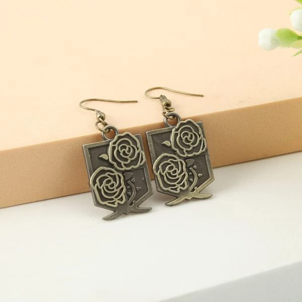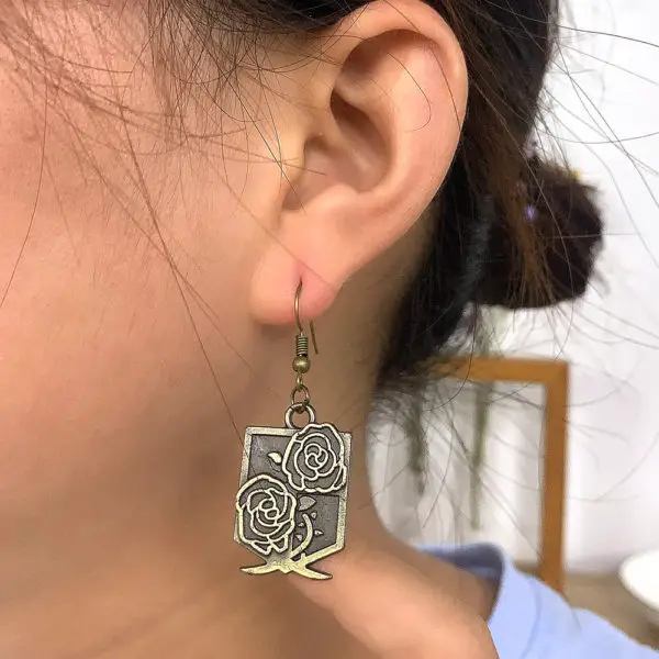 Les boucles d’oreilles Garnison sont d’une belle couleur bronze, qui s’accorde facilement avec n’importe quelle tenue. Ce bijou fantaisie de l’Attaque des Titans représente deux roses, qui sont l’emblème de ce corps de l’armée de Paradis.