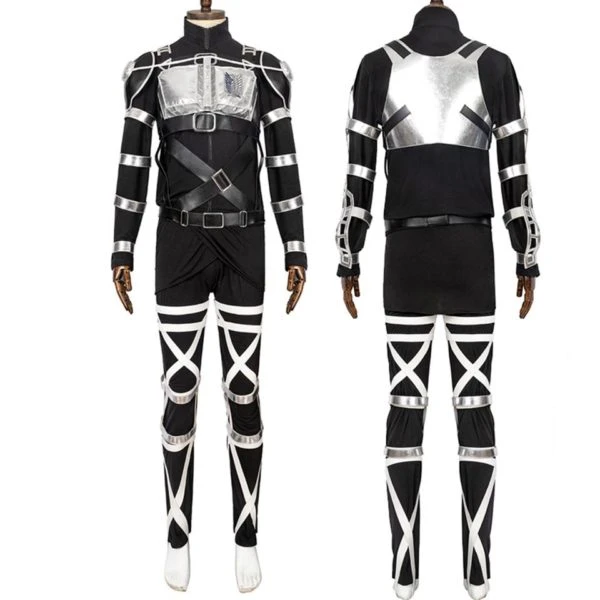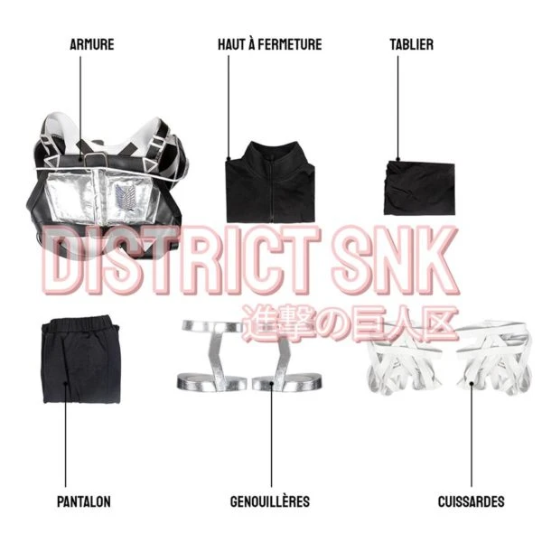Le costume du Bataillon – Attaque de Revelio est une tenue complète de cosplay de l’Attaque des Titans. La tenue entièrement noire est portée durant l’attaque de Revelio. L’attaque ayant lieu durant la nuit, les soldats du Bataillon d’exploration ont adapté leur tenue pour se faire le plus discrets possible. C’est durant cette attaque qui se situe au début de la saison4 de SNK que l’on voit pour la première fois apparaitre l’équipement tridimensionnel anti-humain. Les épées ont laissé la place à des armes à feu.