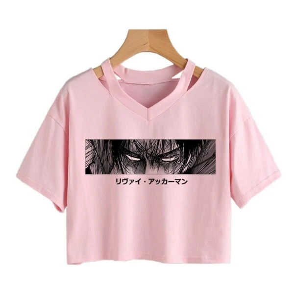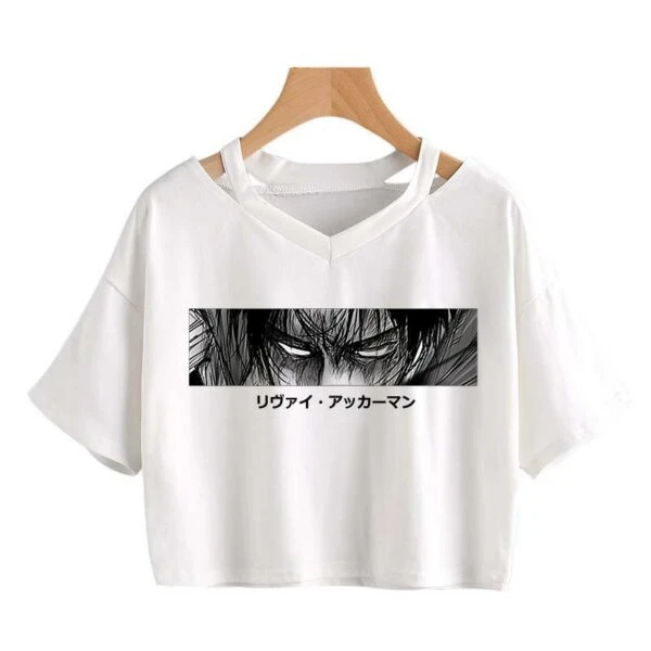 Le crop top Livaï mourant représente Livaï au plus mal, certainement au moment de l’un de ses combats les plus difficiles face à Sieg Jäger sous la forme du Titan Bestial.