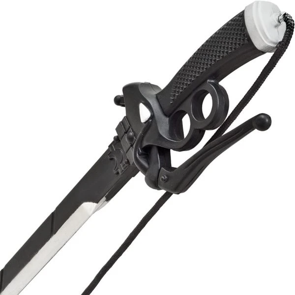 Les épées sont ici fabriquées en plastique souple. La lame ne se détache pas du manche. L’une des épées à la lame noire, l’autre à la lame métallisée.