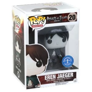 La figurine Pop d’Eren Jäger monochrome est une édition rare sur laquelle aucune couleur n’apparait.