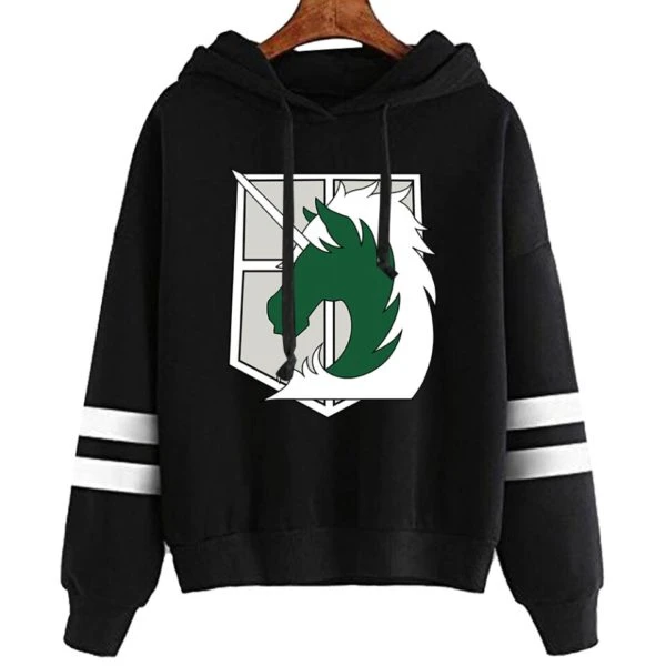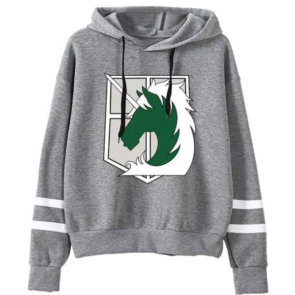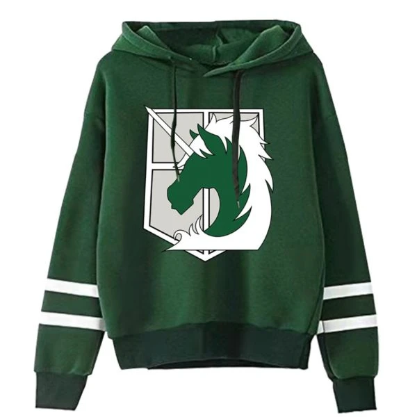Ce sweat à capuche en coton Brigade spéciale rayures représente le logo des brigades spéciales avec une licorne verte à la corne et la crinière blanche.