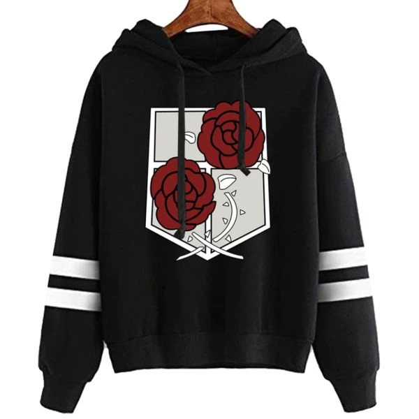 Ce sweat à capuche en coton Garnison rayures représente le logo de la garnison sur la poitrine avec 2 roses et leur tige.