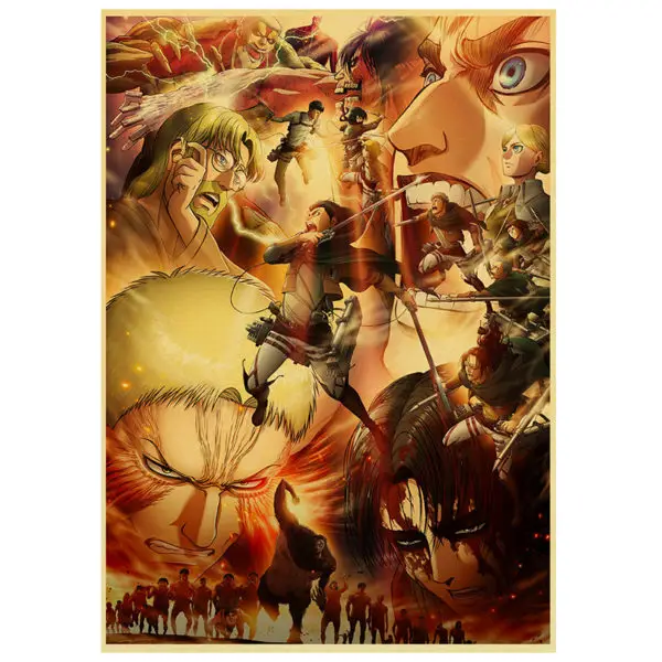 L’affiche Attaque des Titans Saison 3 – visuel 5 imprimée sur du papier de haute qualité décorera parfaitement ta chambre. Disponible au format A4 ou au format A3, le poster a une petite bordure et adopte un effet rétro avec son papier kraft volontairement jauni.