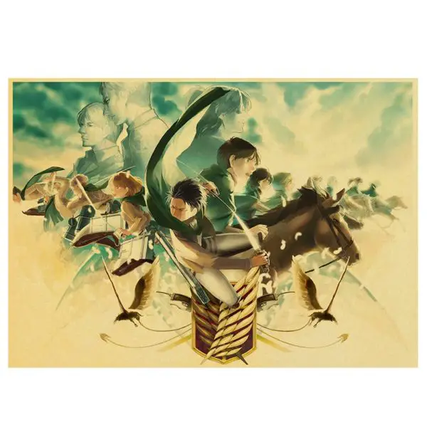 Le poster est un hommage au Bataillon d’Exploration imprimé à partir d’une peinture réalisée par un artiste. On y distingue l’emblème du bataillon en premier plan, avec un Livaï bondissant à l’assaut des titans. À l’arrière on retrouve Eren en pleine chevauchée avec son escouade. Dans le plan du fond, on remarque les hauts gradés du Bataillon, dont le commandant Erwin Smith.