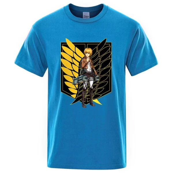 L’image représente Armin en tenue de soldat avec son . Derrière lui apparait en gros le logo du Bataillon d’exploration en noir et jaune.