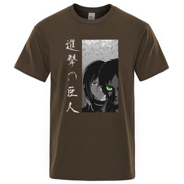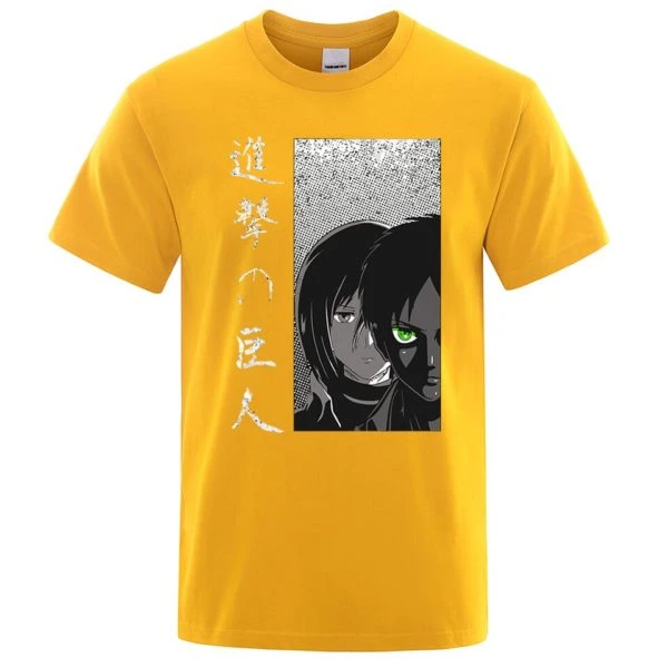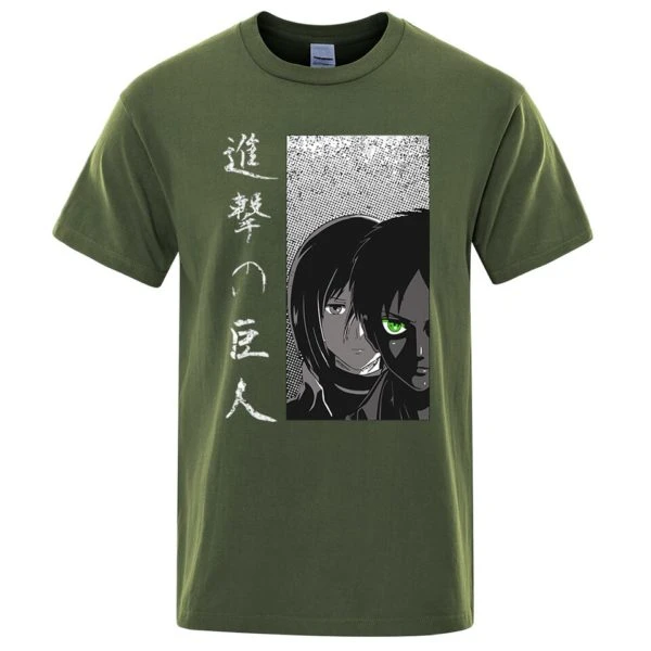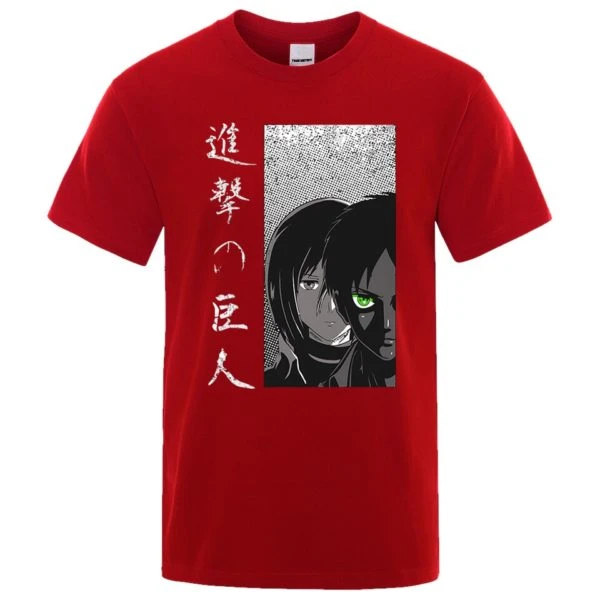 Le T-shirt Eren et Mikasa est disponible en plusieurs couleurs. T-shirt à manches courtes en coton avec une coupe droite et un col rond.