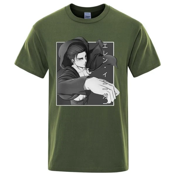 Le T-shirt Eren saison 4 est disponible en plusieurs couleurs. T-shirt à manches courtes en coton avec une coupe droite et un col rond.