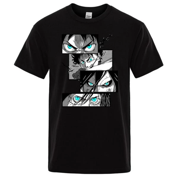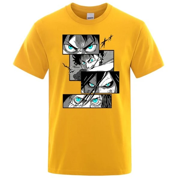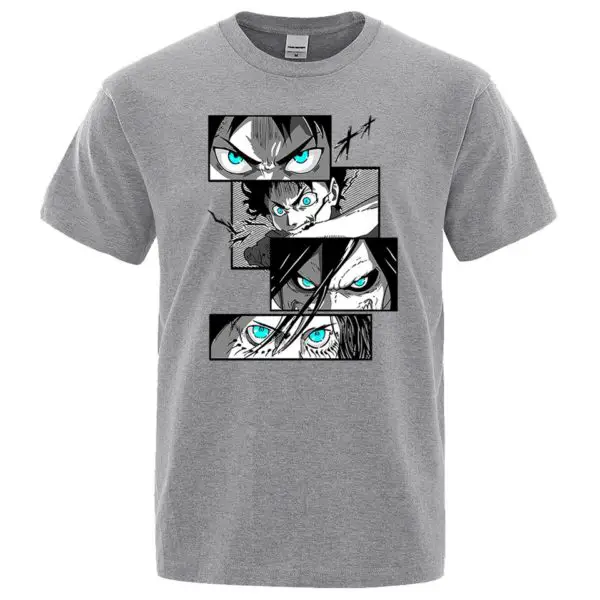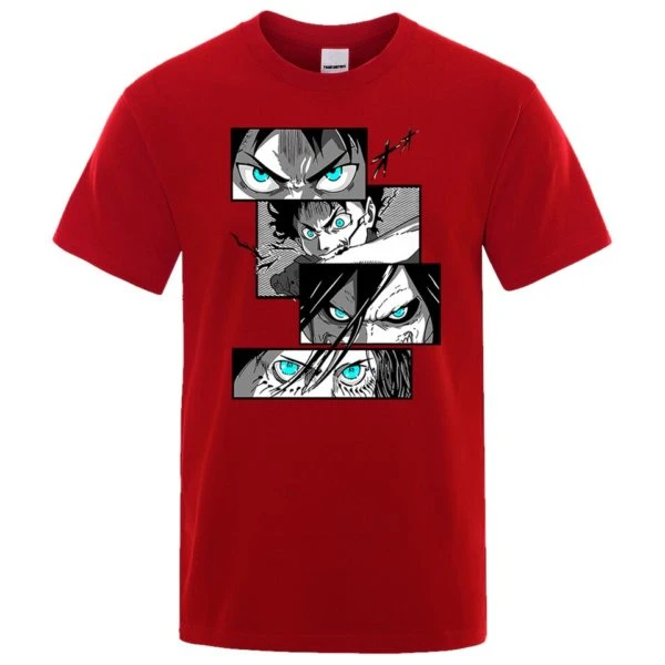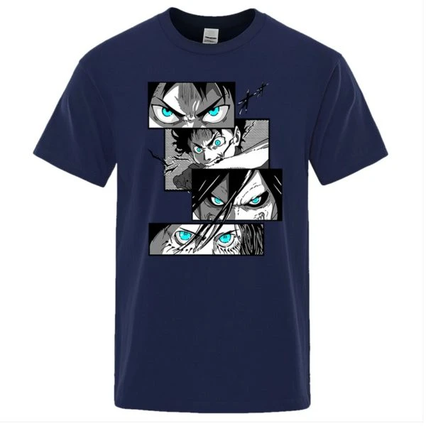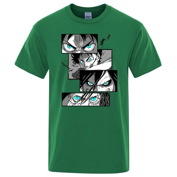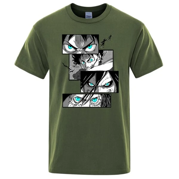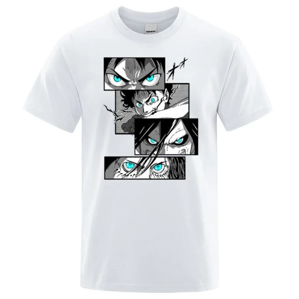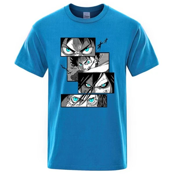 Le T-shirt Eren yeux bleus est disponible en plusieurs couleurs. T-shirt à manches courtes en coton avec une coupe droite et un col rond.