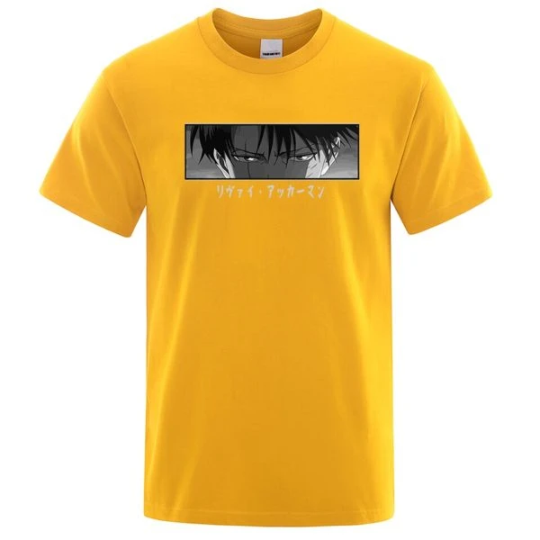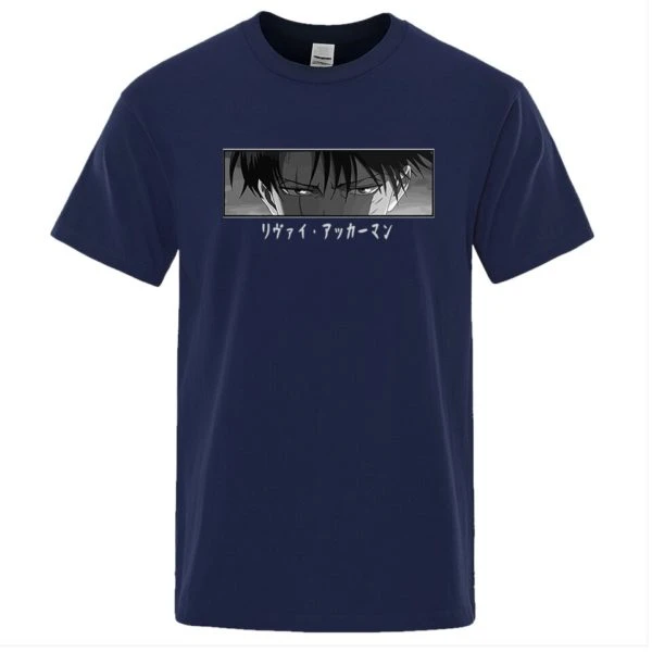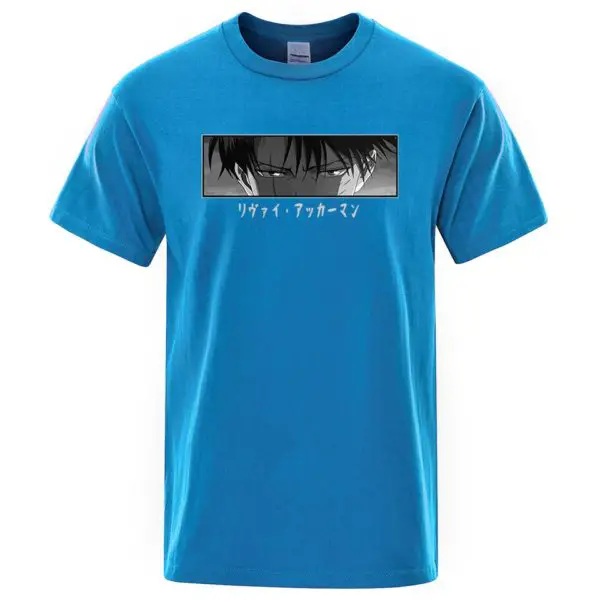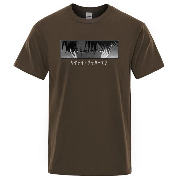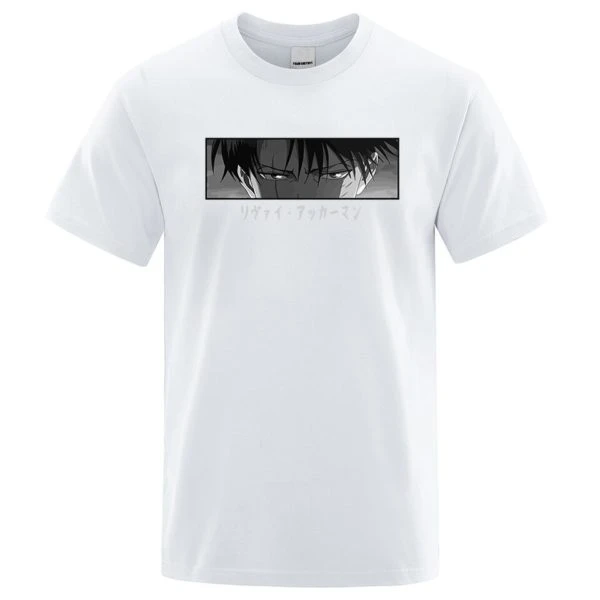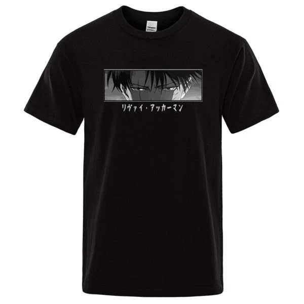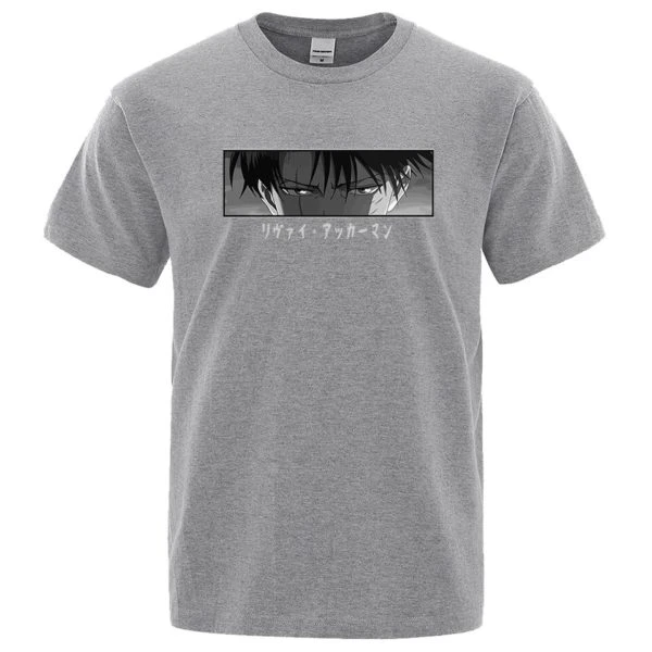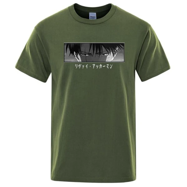 Le T-shirt regard Livaï est disponible en plusieurs couleurs. T-shirt à manches courtes en coton avec une coupe droite et un col rond.